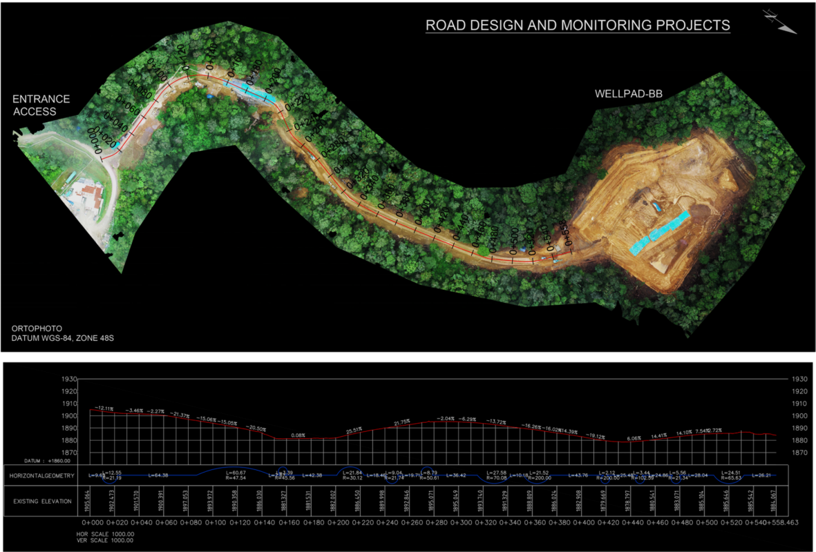 • Earthwork engineering Calculation access road, well pads and disposal area